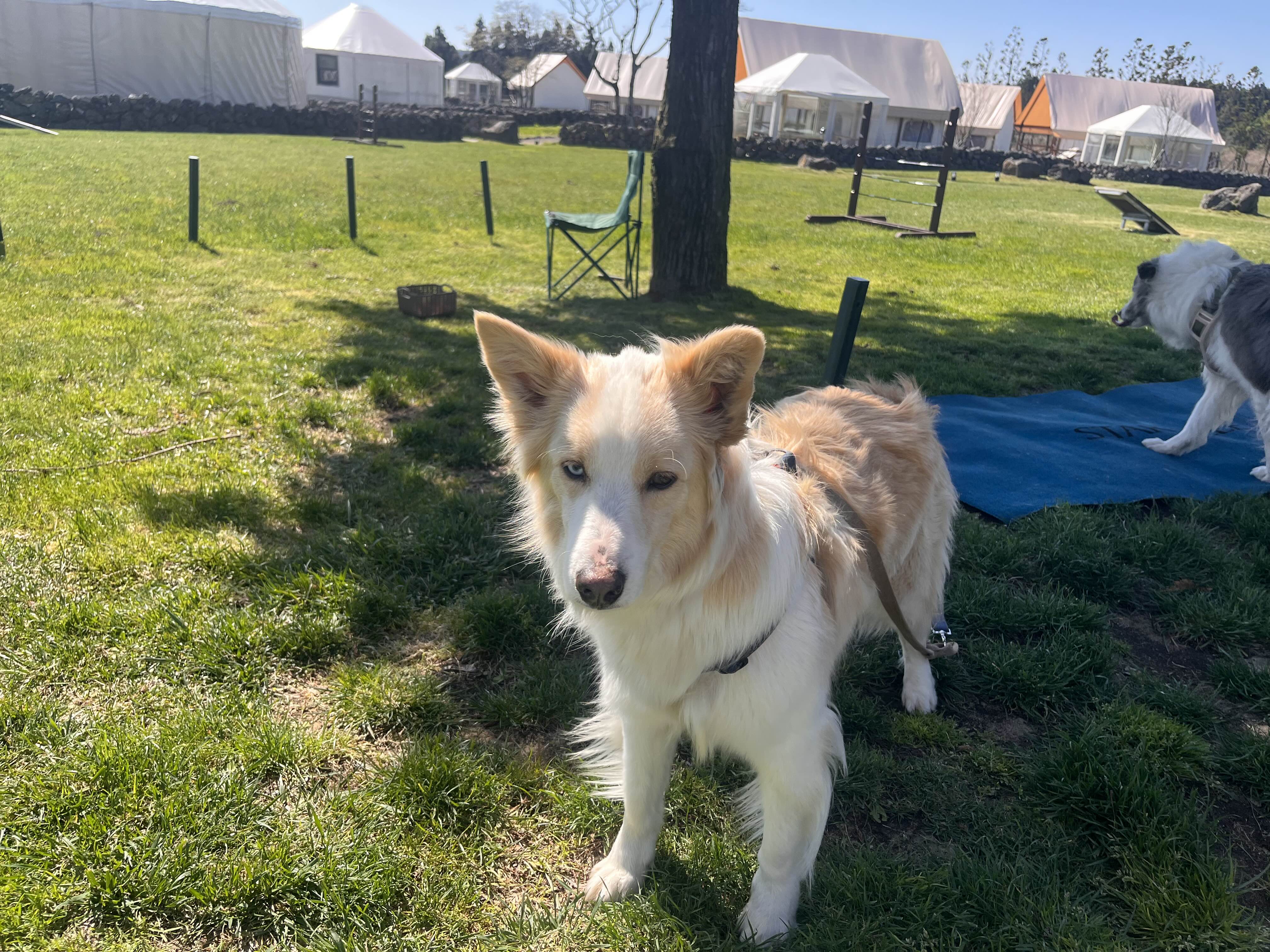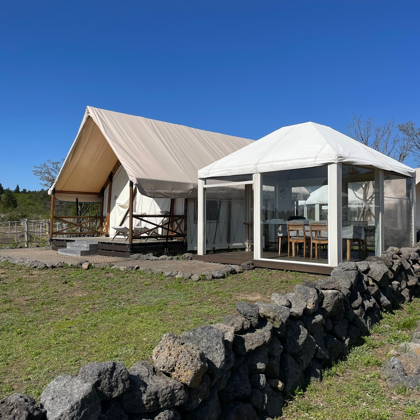 저는 canvas 5m x 6m 타입 예약했고, 바로 앞에 연못이 있었어요.