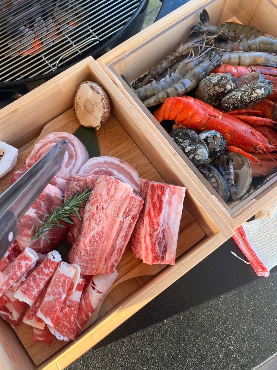 5명이서 바베큐 4인분 예약했어요. 양 충분하고 저는 오후 6시에 예약했어요. 노을 지면서 너무 맛있게 먹었습니다.